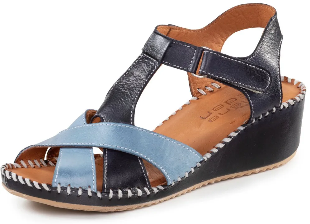 Sandalette von ELENA EDEN, aus weichem Nappaleder, mit verstellbarer Klettspange: Lederfutter, gepolsterte Lederdecksohle, superleichte Synthetik-Riffelsohle sowie 40 mm Keilabsatz