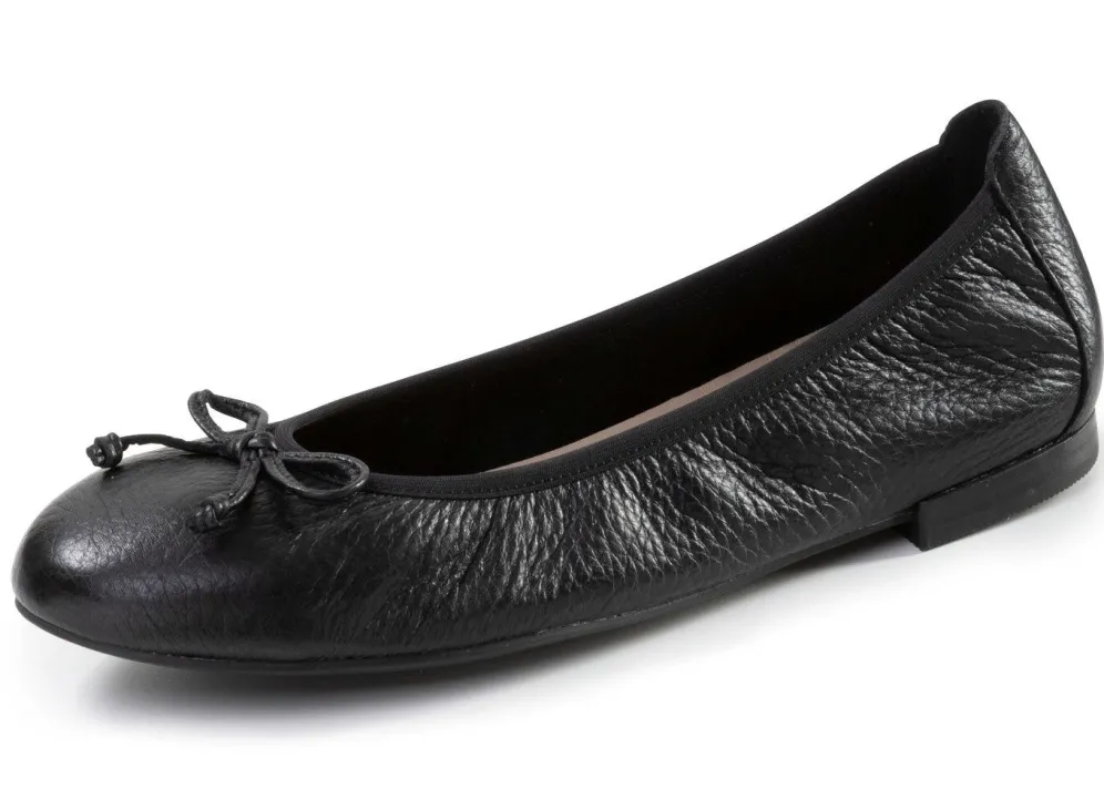 Hochwertige Ballerinas von ELENA EDEN aus weichem, genarbtem Hirsch-Nappaleder, mit Rundumgummizug und Zierschleife: Weite G, herausnehmbares Lederfußbett, superleichte TPR-Riffelsohle sowie 10 mm Absatz