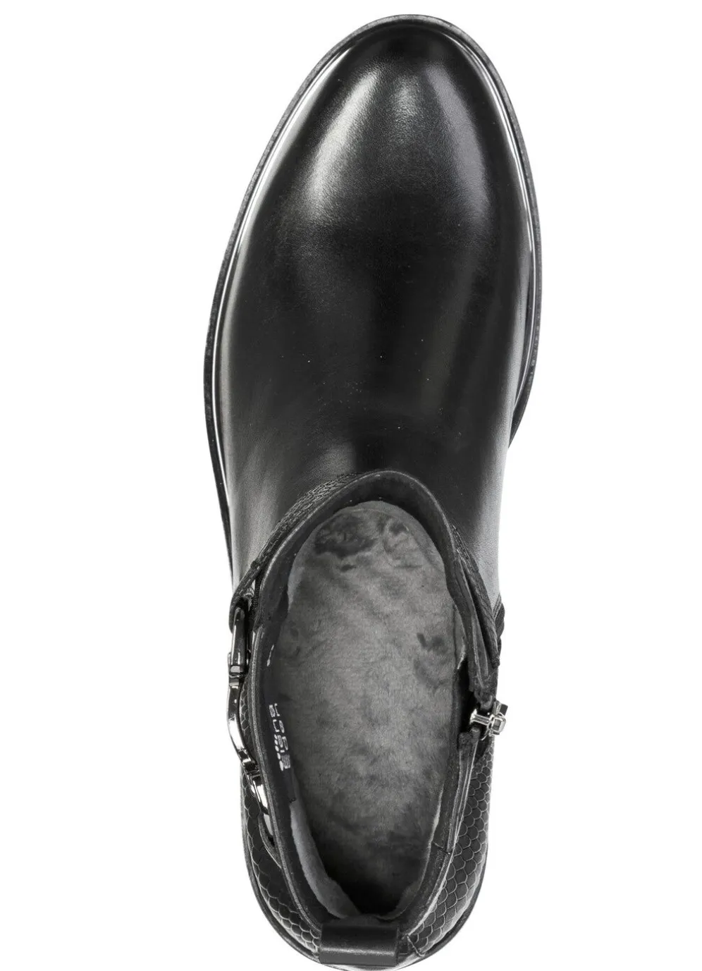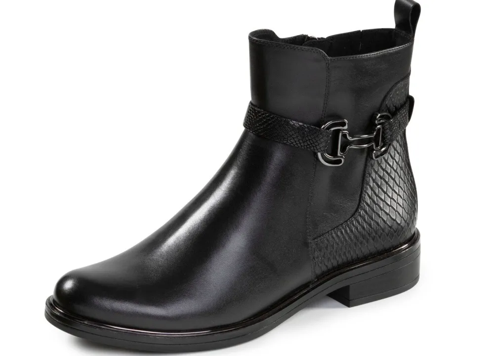Stiefeletten von ELENA EDEN, aus teilweise reptilgeprägtem Nappaleder, mit Deko-Spange: Weite G, praktischer Innenreißverschluss, verdeckter Gummizug am Schaft, wärmendes Textilfutter, gepolsterte Decksohle, leichte TPR-Riffelsohle mit Metallic-Rahmen sowie 20 mm Absatz. Schafthöhe ca. 14 cm