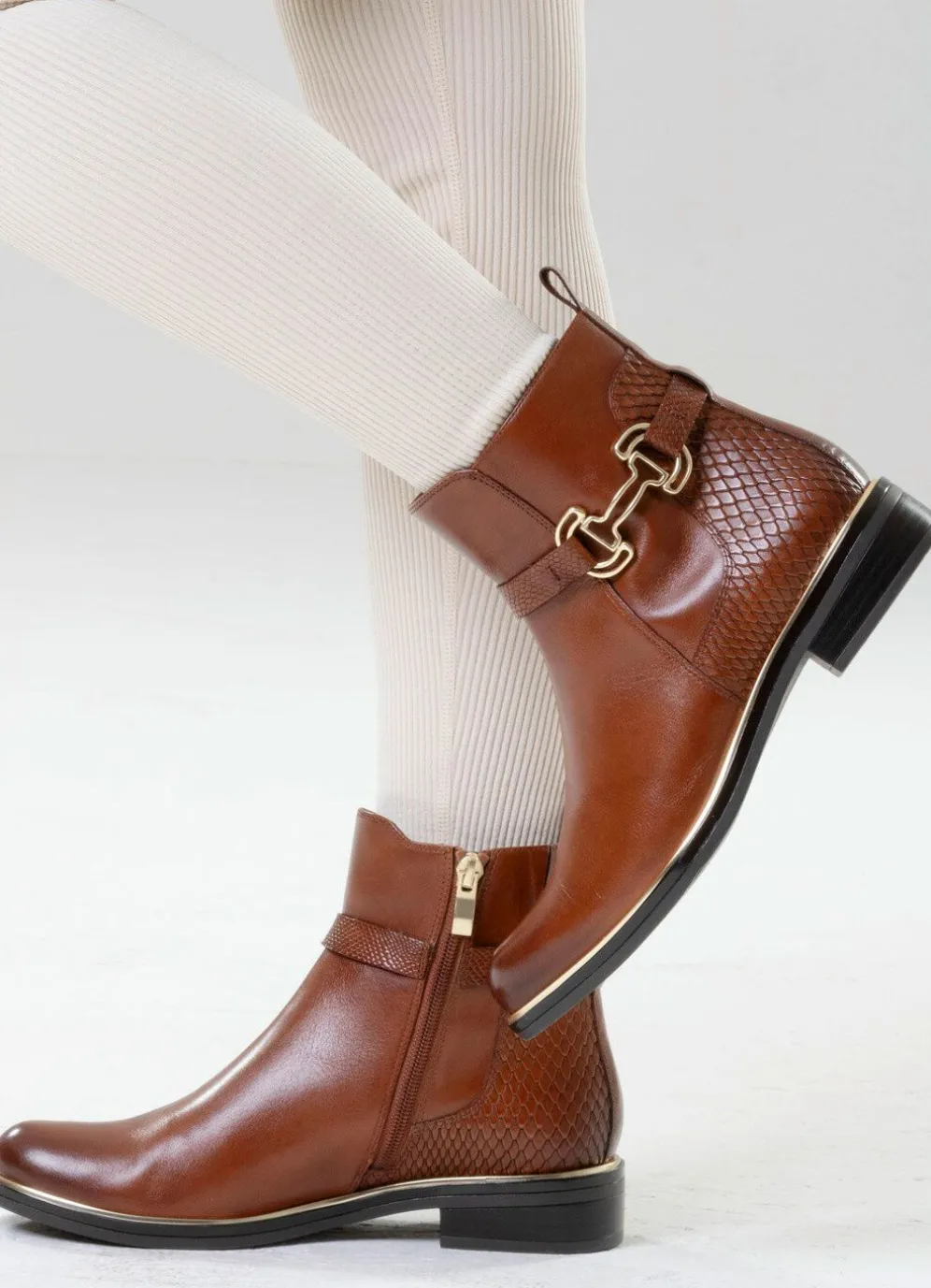 Stiefeletten von ELENA EDEN, aus teilweise reptilgeprägtem Nappaleder, mit Deko-Spange: Weite G, praktischer Innenreißverschluss, verdeckter Gummizug am Schaft, wärmendes Textilfutter, gepolsterte Decksohle, leichte TPR-Riffelsohle mit Metallic-Rahmen sowie 20 mm Absatz. Schafthöhe ca. 14 cm