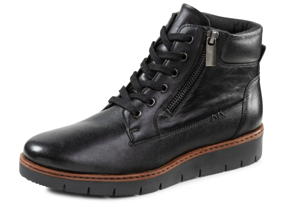 Schnür-Bootie von ELENA EDEN, aus teilweise schattiertem Nappaleder, mit gepolstertem Schaftrand: Weite G, zwei seitliche Reißverschlüsse, Textilfutter, gepolsterte Decksohle, leichte TPR-Laufsohle sowie 15 mm Keilabsatz. Schafthöhe ca. 10 cm