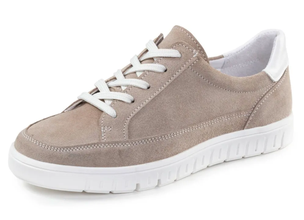 Schnür-Sneaker von ELENA EDEN, aus Veloursleder mit weißem Nappaleder-Besatz: Weite G, Futter, herausnehmbares Lederfußbett, leichte TR-Profilsohle sowie 10 mm Keilabsatz