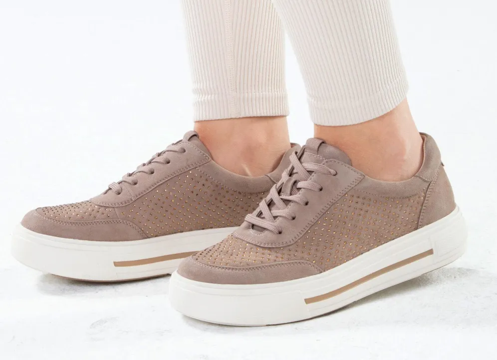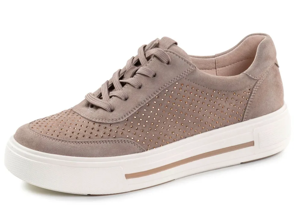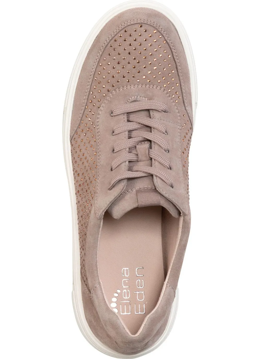 ELENA EDEN-Sneaker aus feinem Veloursleder, mit zart funkelnden Glitzersteinchen besetzt: Weite G, Schnürung, Futter, Lederdecksohle sowie superleichte 30 mm EVA-Plateausohle