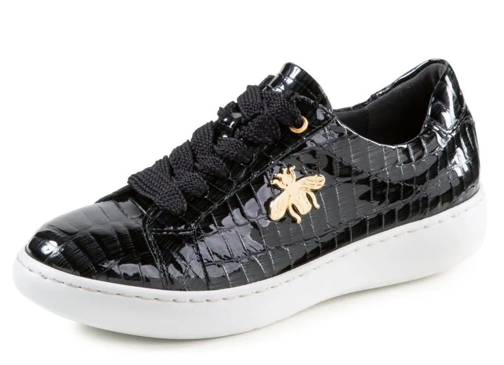 Trendstarker ELENA EDEN-Sneaker aus teilweise krokogeprägtem Lackleder, mit niedlichem Metallschmuck und Schnürung: Weite G, Futter, herausnehmbare Decksohle, leichte, flache PU-Riffelsohle