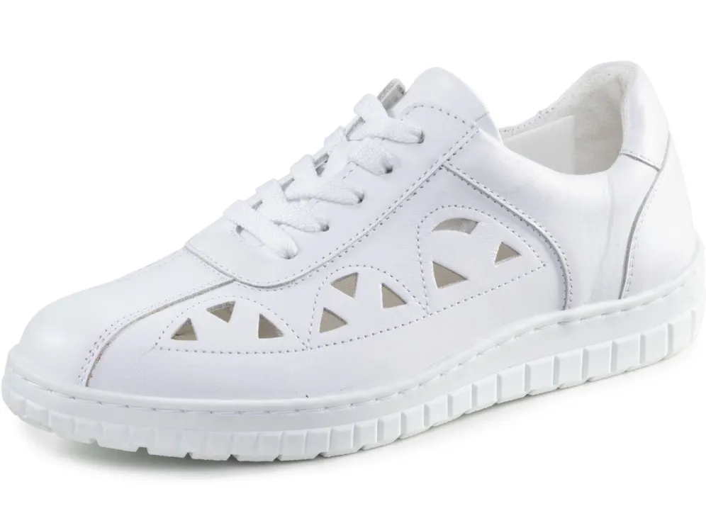 Luftig durchbrochener Elena Eden-Sneaker aus Veloursleder, in Weiß aus Nappaleder: Weite G, Schnürung, Futter, herausnehmbares Fußbett, TR-Profilsohle sowie 15 mm Keilabsatz