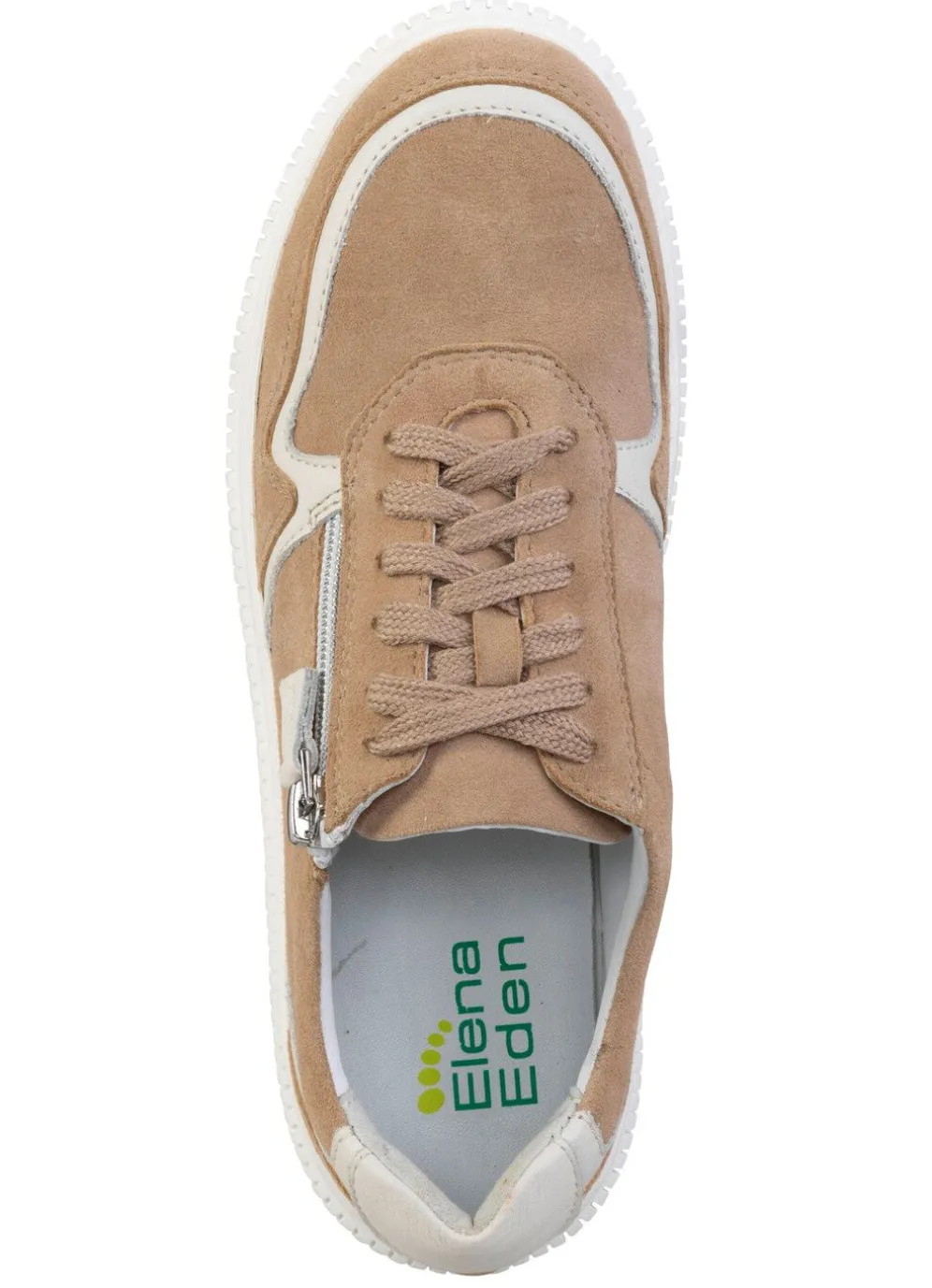 ELENA EDEN-Sneaker aus Nappa- oder Veloursleder mit Kontrast-Besätzen: Weite G, Schnürung, seitlicher Reißverschluss, Lederfutter, herausnehmbares Lederfußbett sowie 25 mm TR-Plateau-Riffelsohle mit flachem Absatz