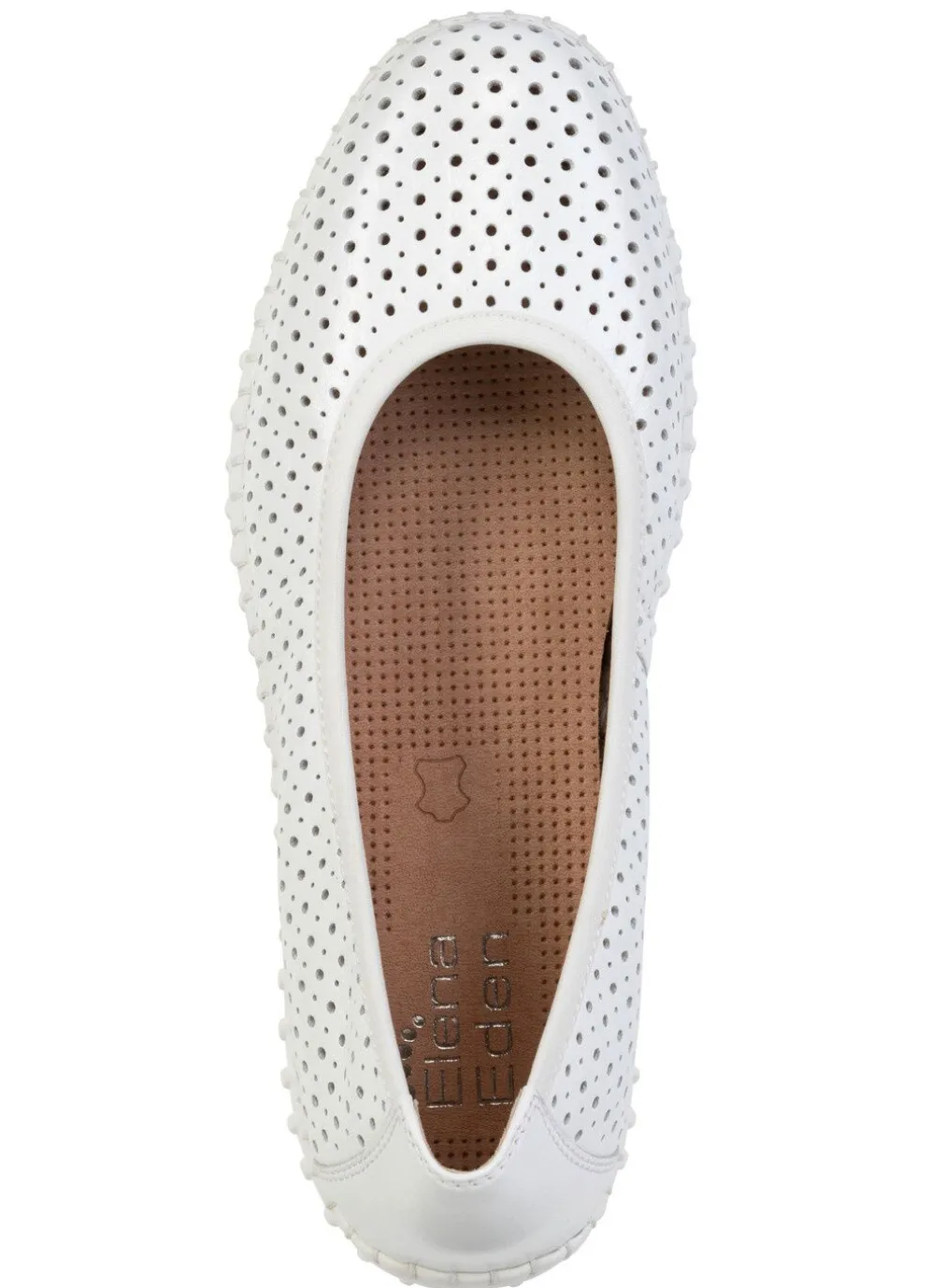 Luftig perforierte Ballerinas von ELENA EDEN aus Nappaleder: Weite G, Rundum-Gummizug, Futter, herausnehmbares Lederfußbett, leichte PU-Laufsohle sowie 10 mm Keilabsatz