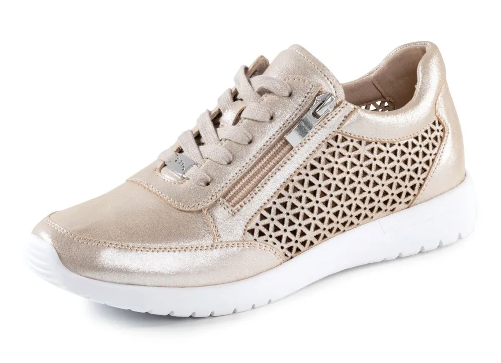 Sneaker von ELENA EDEN, aus luftig perforiertem Nappaleder, mit Schnürung und Seitenreißverschluss: Weite G, Futter, herausnehmbares Lederfußbett, superleichte TR-Riffelsohle, 10 mm Keilabsatz