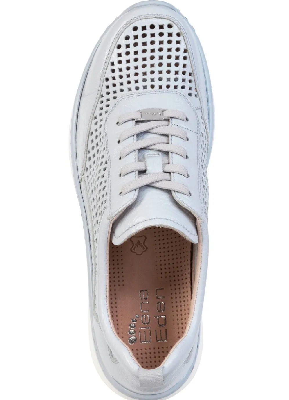 Sneaker von ELENA EDEN aus luftig perforiertem Hirschleder, mit Schnürung: Weite H, gefüttertes Quartier, herausnehmbares Lederfußbett, leichte PU-Laufsohle sowie 25 mm Keilabsatz