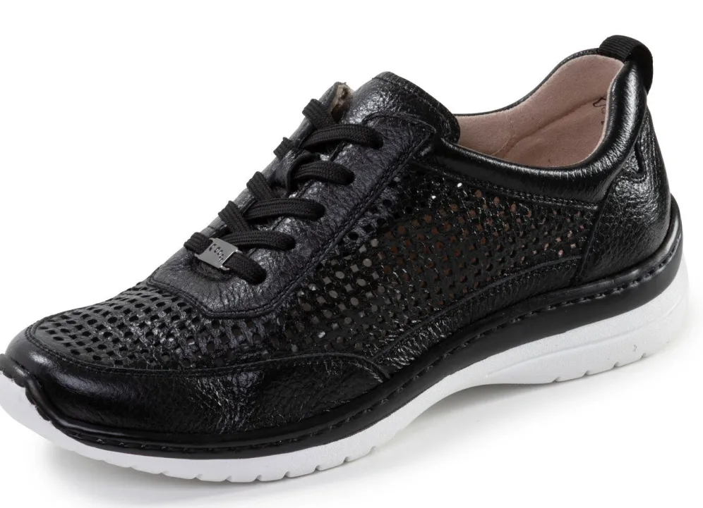 Sneaker von ELENA EDEN aus luftig perforiertem Hirschleder, mit Schnürung: Weite H, gefüttertes Quartier, herausnehmbares Lederfußbett, leichte PU-Laufsohle sowie 25 mm Keilabsatz