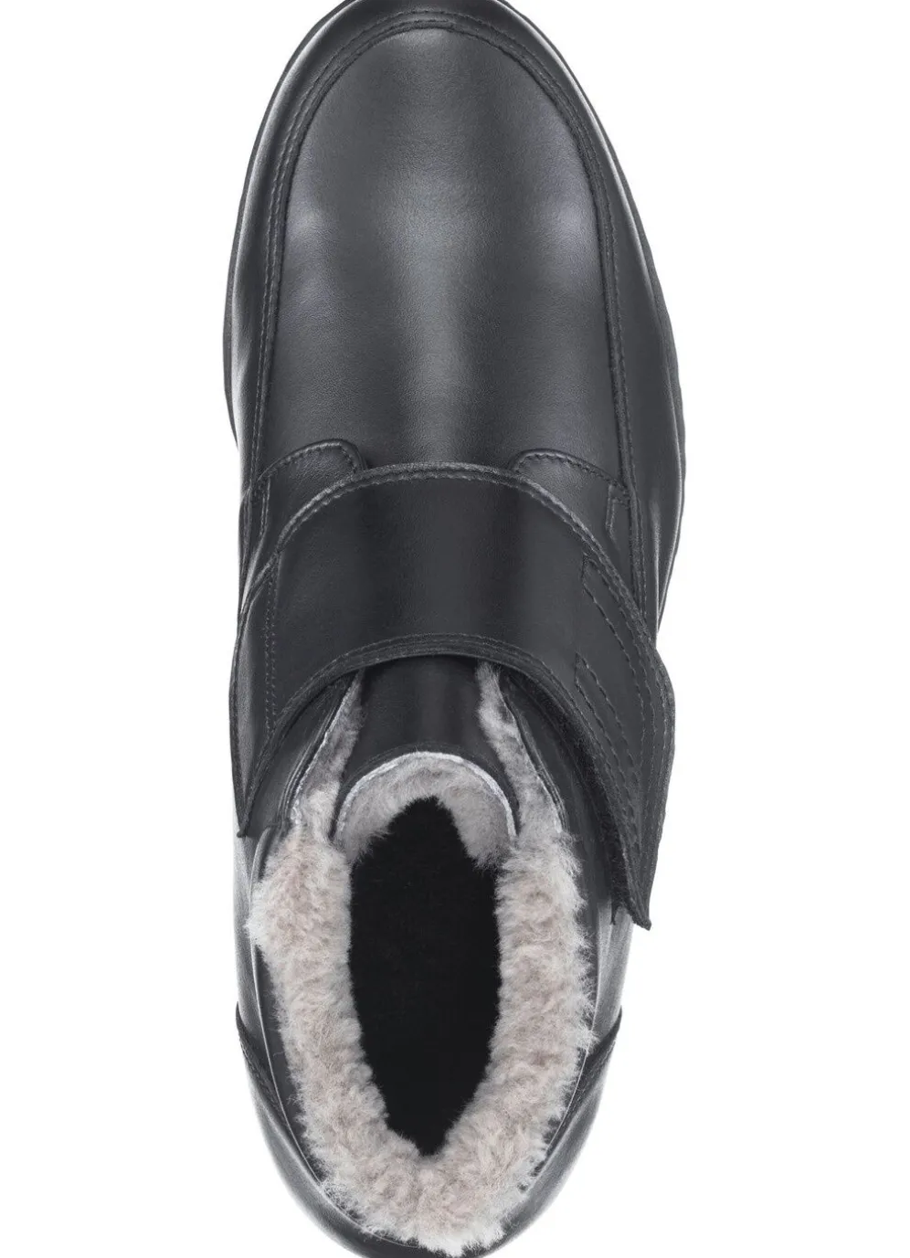 ELENA EDEN-Stiefelette aus Rind-Anilinleder, mit praktischer Klettspange: Weite H, echtes, molliges Lammfellfutter, warme Decksohle, leichte TR-Profilsohle, 30 mm Keilabsatz. Schafthöhe ca. 10 cm