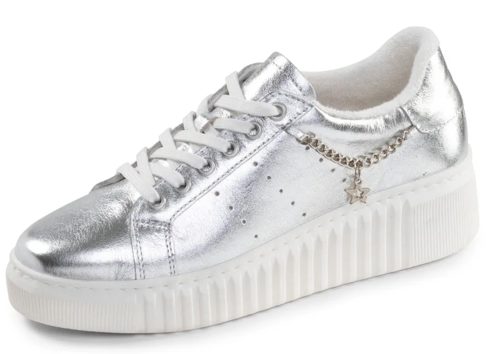 Sneaker von ELENA EDEN, aus Nappaleder, mit trendigem Ketten-Schmuck und Zier-Perforation: Weite G, Schnürung, gepolstertes Frottee-Futter, herausnehmbares Fußbett, leichte 30 mm TR-Plateausohle mit 45 mm Keilabsatz
