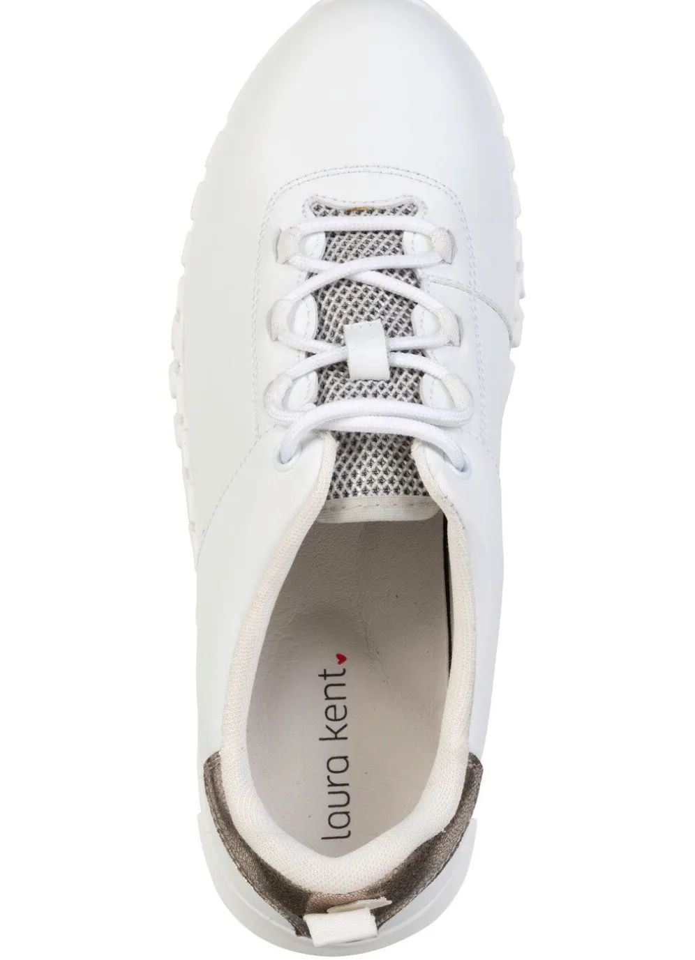 Sneaker von ELENA EDEN aus Nappaleder mit Mesh-Einsatz und Metallic-Besatz: Weite G, Schnürung, Textilfutter, herausnehmbares Fußbett, leichte TR-Profilsohle sowie 15 mm Keilabsatz