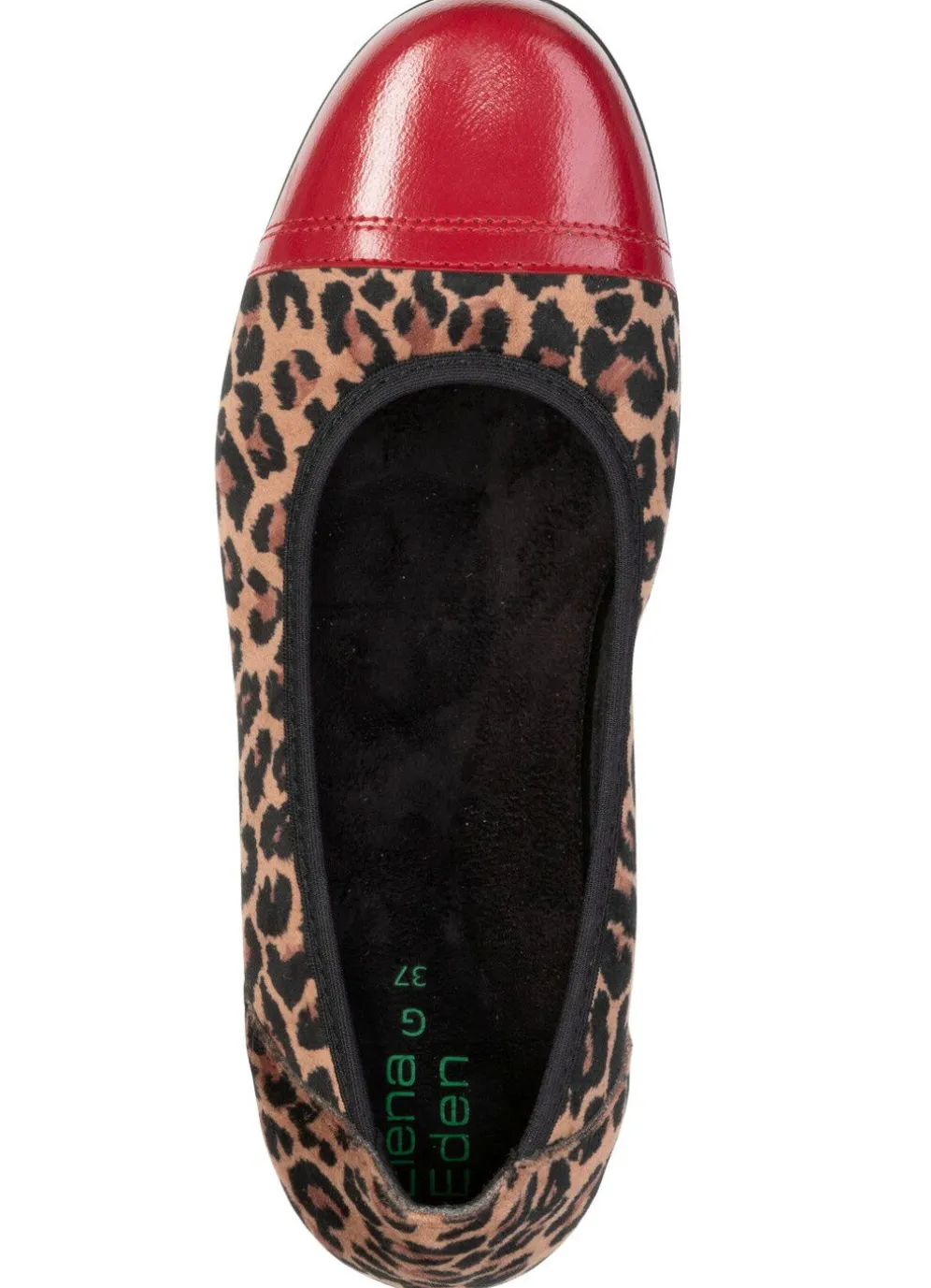 Rassige Ballerinas von ELENA EDEN, in Camel-Rot aus Textilmaterial, mit kontrastfarbener Lackleder-Vorderkappe: Weite G, Futter und herausnehmbares Fußbett aus Textil, leichte TR-Laufsohle sowie 15 mm Keilabsatz