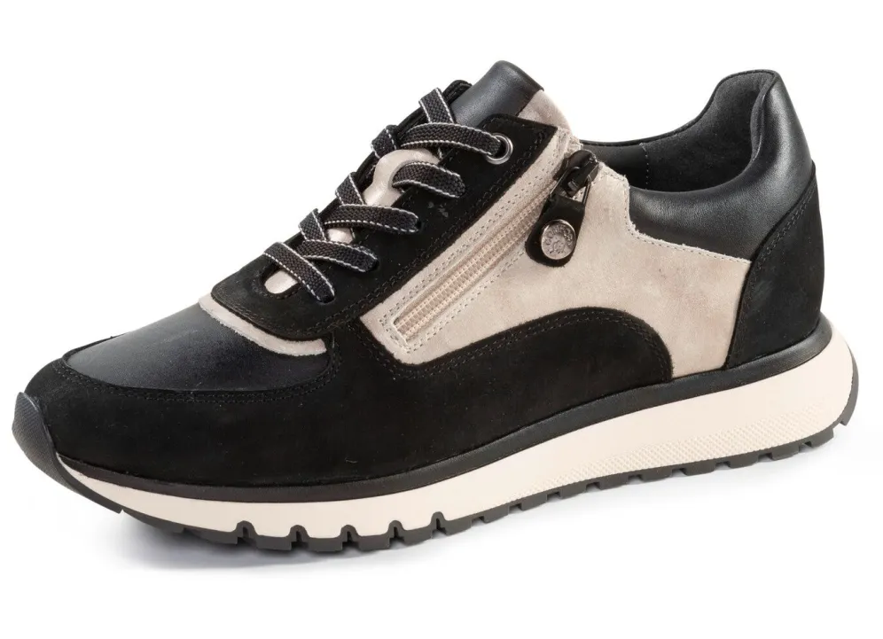 Sneaker von ELENA EDEN, aus Nappa- und Nubukleder in Schwarz-Kiesel, mit Schnürung und Seitenreißverschluss: Weite G, Futter, herausnehmbares Fußbett, TR-Profilsohle, 15 mm Keilabsatz