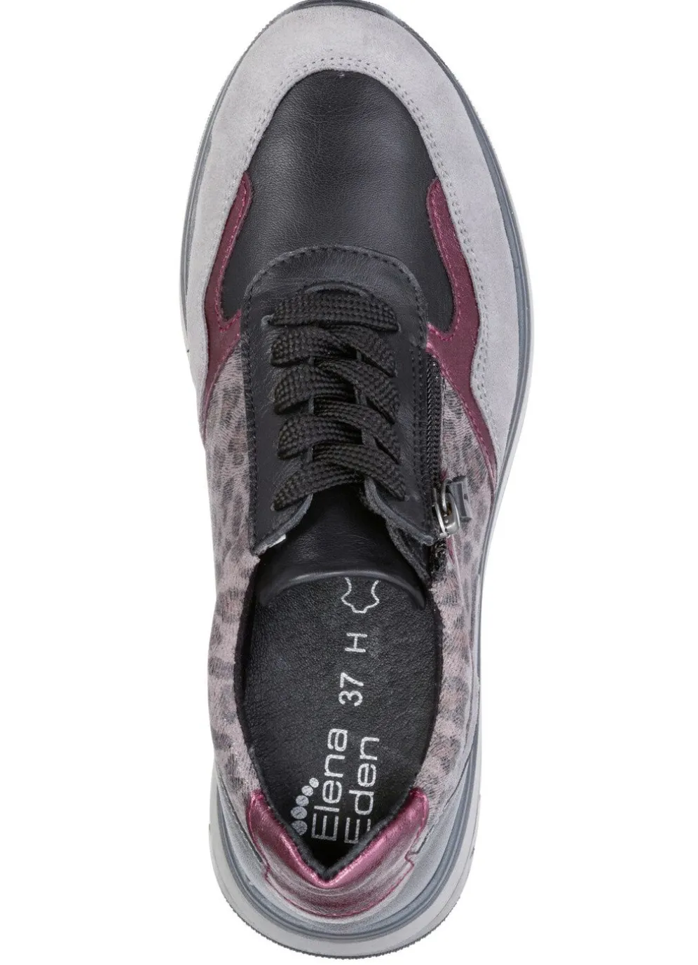 Sneaker von ELENA EDEN, aus interessanten Leder-Materialmix, teilweise mit Leo-Print: Weite H, Schnürung, Seitenreißverschluss, Textilfutter, herausnehmbares Lederfußbett, leichte TR-Laufsohle sowie 15 mm Keilabsatz