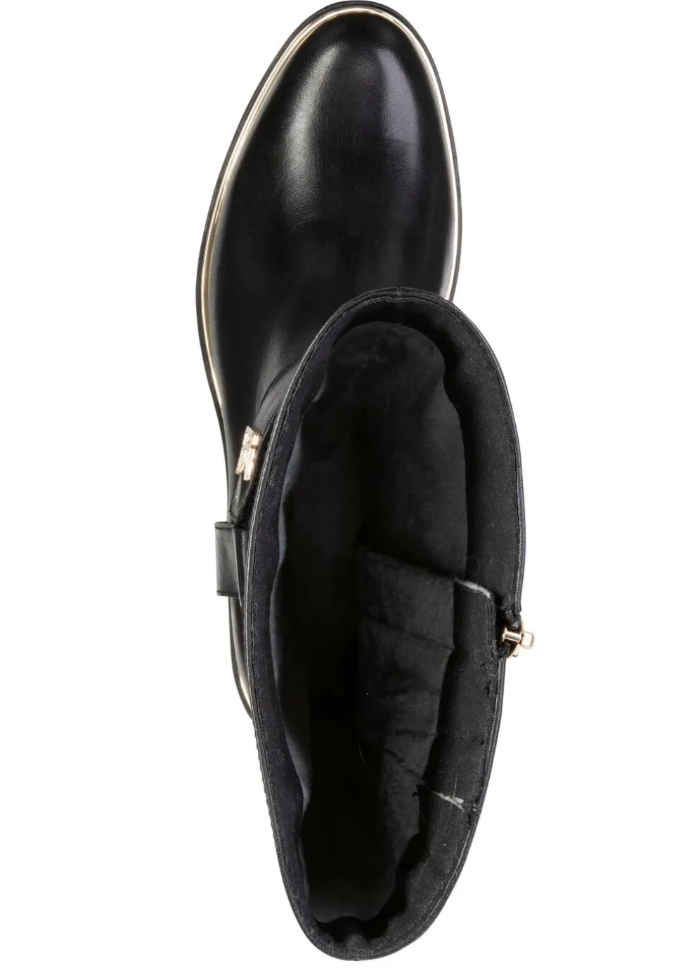 Angesagte Stiefel von ELENA EDEN, aus edlem Nappaleder mit Zier-Klettspange: Weite G, praktischer Innenreißverschluss, verdeckter Elastikeinsatz am Schaft, wärmendes Textilfutter, leichte TPR-Riffelsohle mit goldfarbenem Rahmen sowie 20 mm Absatz. Schafthöhe ca. 39 cm, Wadenweite ca. 36-38 cm
