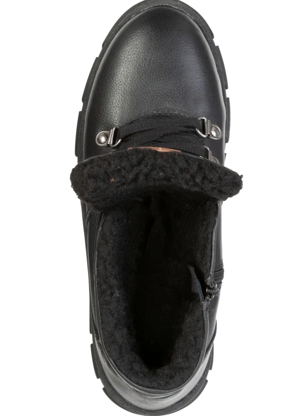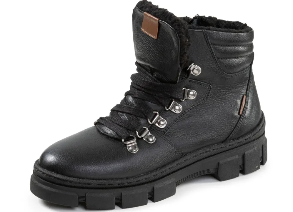 Boots von ELENA EDEN, aus Veloursleder, in Schwarz aus Nappaleder mit praktischem Innenreißverschluss und gepolstertem Schaftrand: Weite H, Schnürung, Warmfutter, herausnehmbares Fußbett, leichte TR-Profilsohle sowie 15 mm Absatz. Schafthöhe ca. 12 cm