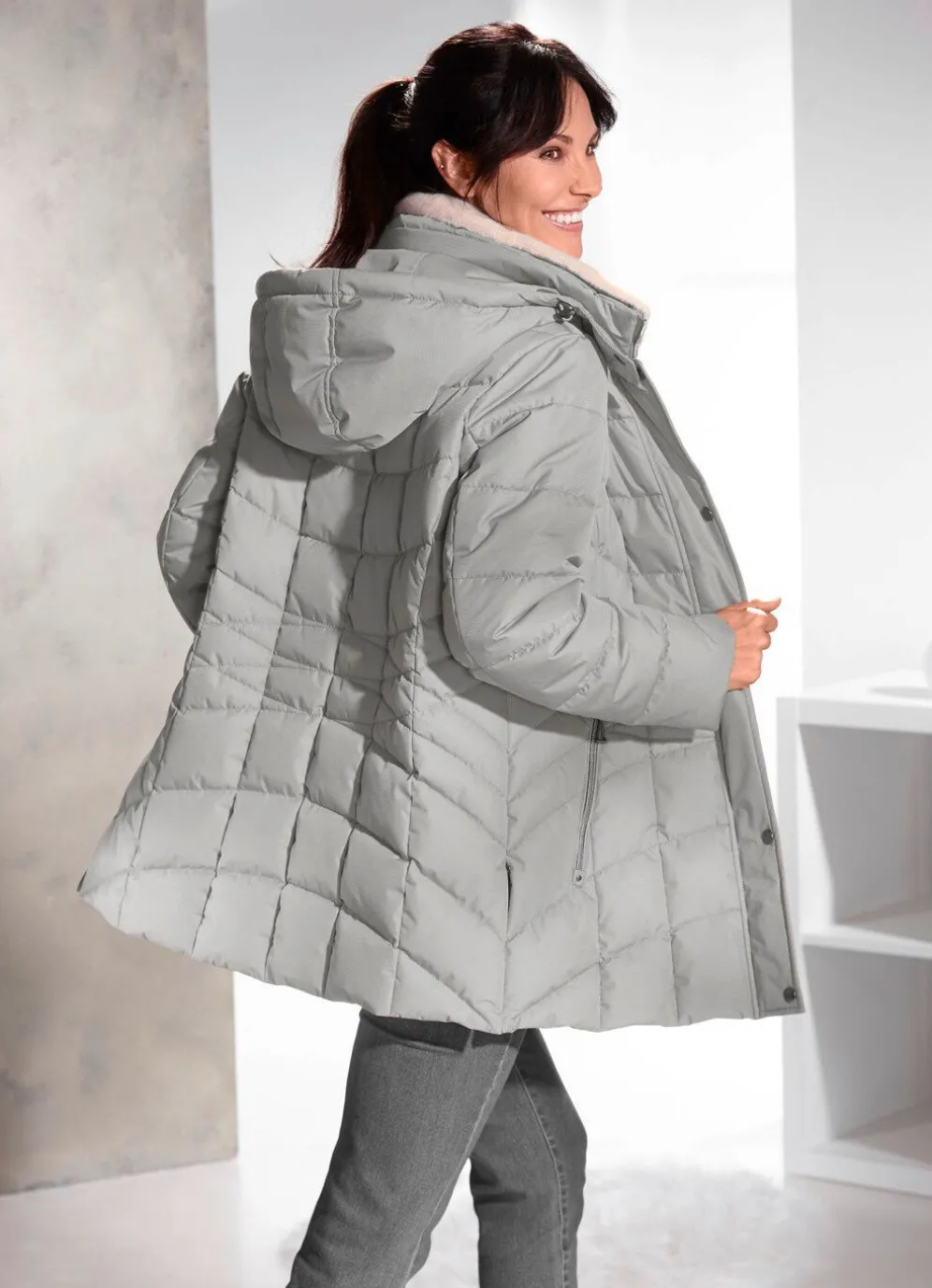 Dass sich Funktion und Style hervorragend vereinen lassen zeigt diese Funktionsjacke: abnehmbare Kapuze mit Durchzugsband, Stopper, Riegel und Druckern, durch Reißverschluss unter der Druckerleiste hoch schließbarer Stehkragen mit abnehmbarem Kunstpelz-Besatz, Reißverschluss an Taschen und Seitenschlitzen, umschlagbare Ärmel sowie eine Innentasche. Länge ca. 76 cm, ab Gr. 46 ca. 78 cm, bei Gr. 52 ca. 80 cm.