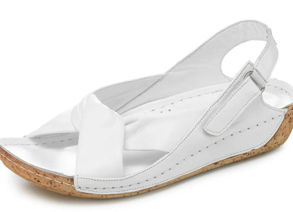 Sandalen aus teilweise schattiertem Rind-Nappaleder: Weite G, verstellbare Klettspange mit seitlichem Gummizug, Lederfutter, gepolstertes Lederfußbett, superleichte PU-Laufsohle sowie 25 mm Keilabsatz