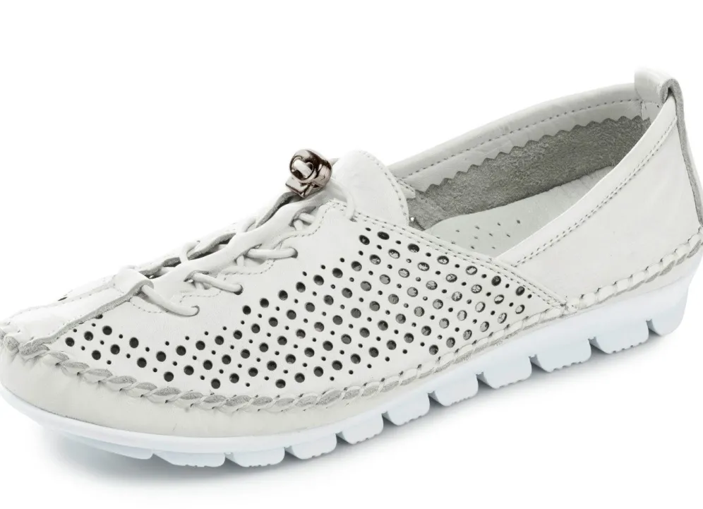 Perforierte Slipper aus schattiertem Rind-Nappaleder, in Mokassin-Machart: Weite G, elastisches Schnellschnürsystem mit Stopper, herausnehmbares Lederfußbett, leichte TR-Profilsohle, 15 mm Keilabsatz