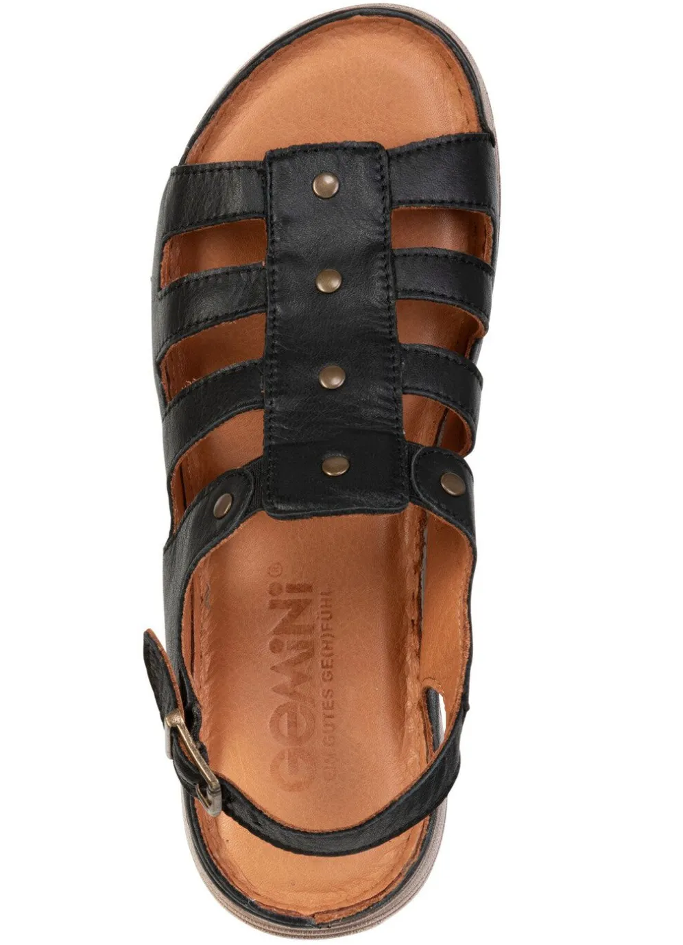 Sandalen aus weichem Nappaleder, mit Ziernieten und Elastikeinsätzen: Weite G, verstellbares Fersenriemchen, Lederfutter, gepolstertes Lederfußbett, leichte PU-Riffelsohle sowie 20 mm Keilabsatz