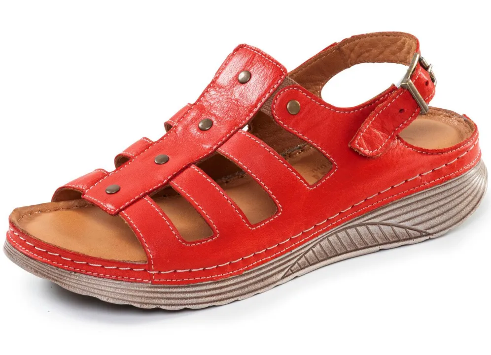 Sandalen aus weichem Nappaleder, mit Ziernieten und Elastikeinsätzen: Weite G, verstellbares Fersenriemchen, Lederfutter, gepolstertes Lederfußbett, leichte PU-Riffelsohle sowie 20 mm Keilabsatz