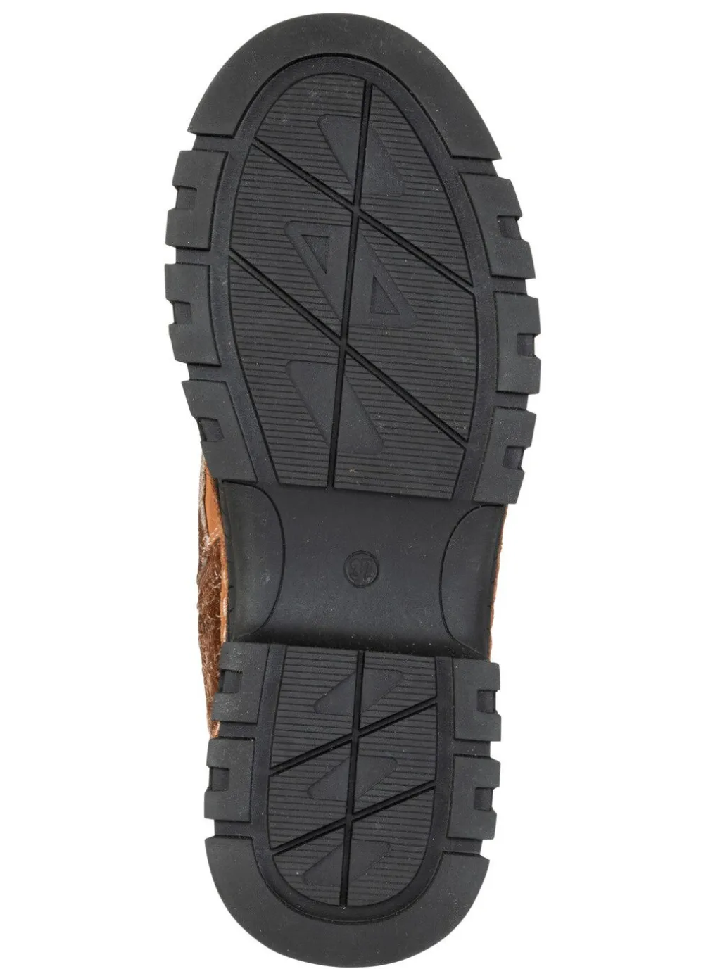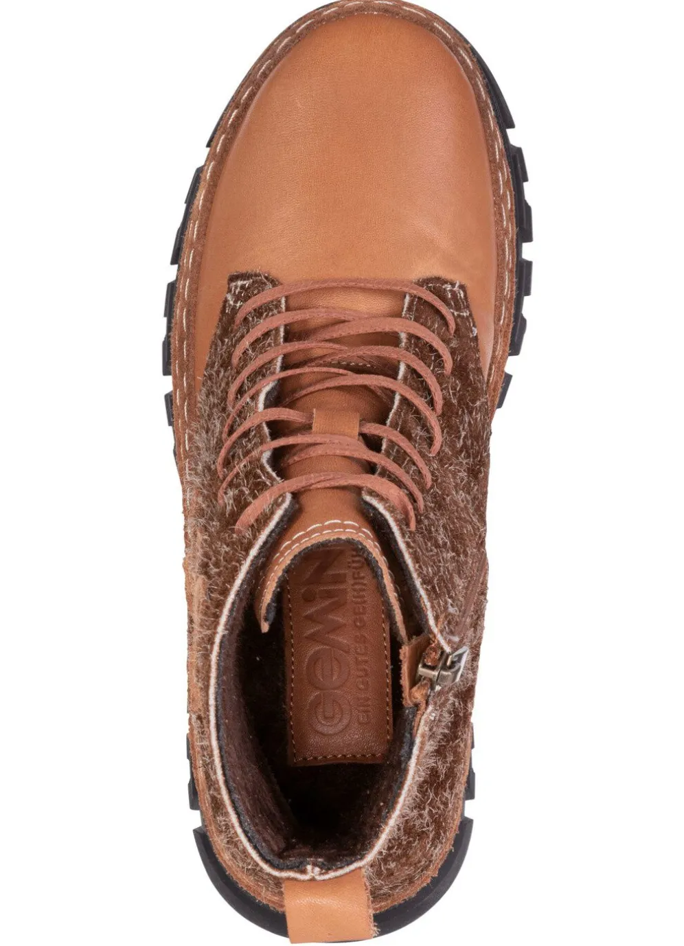 Stiefeletten aus Nappa- und meliertem Veloursleder, mit Blüten-Applikationen, Schnürung und praktischem Innenreißverschluss: Weite G, wärmendes Textilfutter, herausnehmbares Fußbett, leichte TR-Profilsohle sowie 15 mm Absatz. Schafthöhe ca. 14 cm