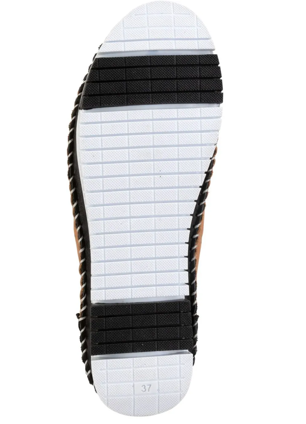 Luftig durchbrochener Mokassin-Slipper aus Nappaleder, mit dezenter Knitter-Struktur: Weite G, dekorative Gummizüge, zwei seitliche Elastikeinsätze, herausnehmbares Lederfußbett, leichte TR-Profilsohle sowie 10 mm Keilabsatz