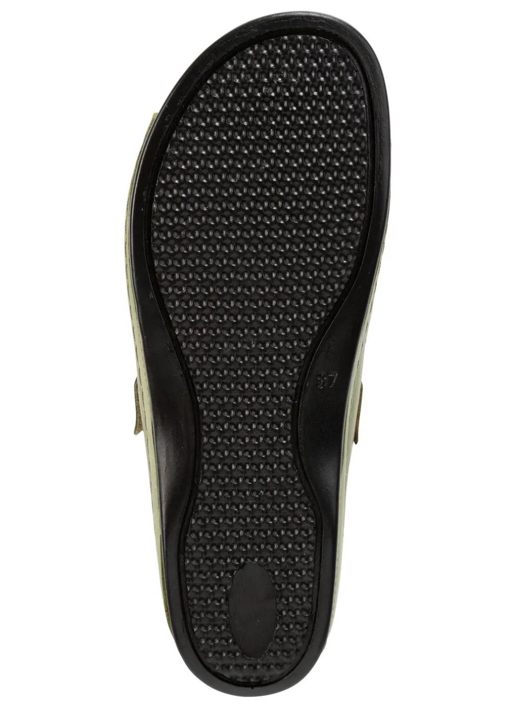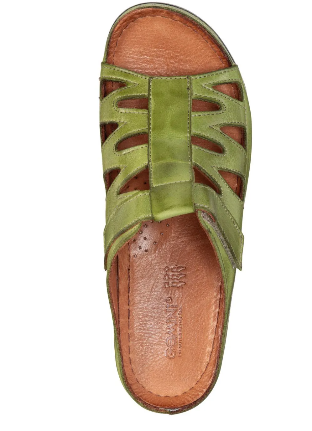 Luftig durchbrochene Pantolette aus teilweise schattiertem Rind-Nappaleder, mit Klettspange: Weite G, Lederfutter, gepolstertes Lederfußbett, leichte PU-Laufsohle sowie 35 mm Keilabsatz