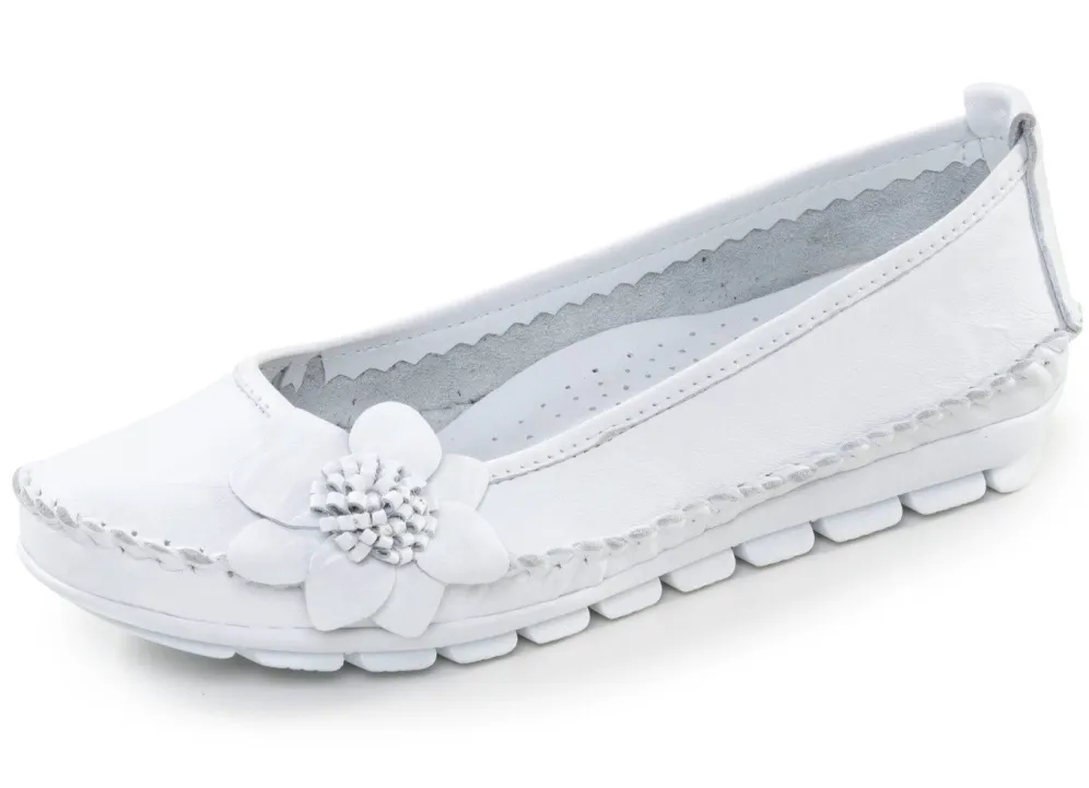 Ballerinas aus Nappaleder mit dezenter Knitter-Struktur, in Mokassin-Machart: Weite G, Lederblüte, herausnehmbares Lederfußbett, leichte TR-Profilsohle sowie 15 mm Keilabsatz