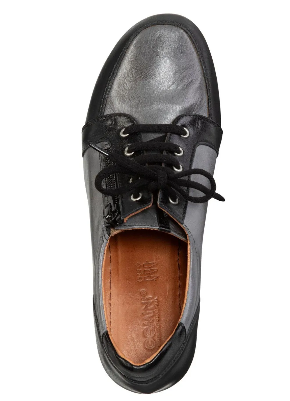 Schnür-Trotteur in Grau-Schwarz aus teilweise schattiertem Nappaleder, mit seitlichem Reißverschluss: Weite G, Lederfutter, gepolsterte Lederdecksohle, superleichte PU-Riffelsohle sowie 60 mm Absatz