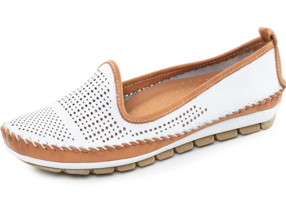Luftig perforierte Slipper aus Nappaleder in Mokassin-Verarbeitung: Weite G, herausnehmbares Lederfußbett, leichte TR-Profilsohle sowie 15 mm Keilabsatz