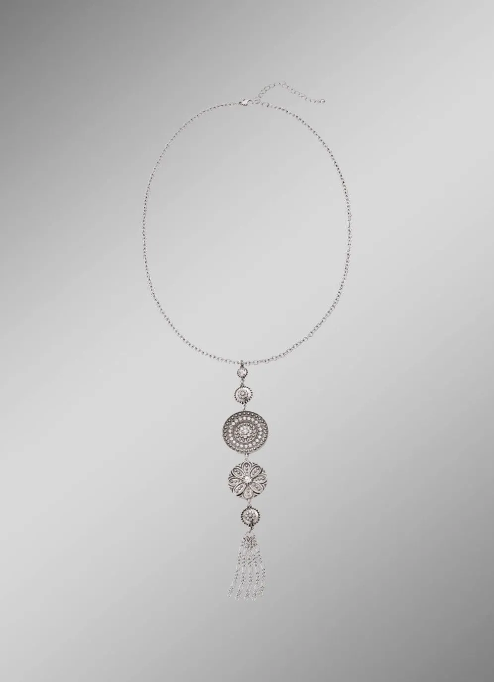 Die „Y“-Form der Halskette zahlt sich aus! Genau die richtige Wirkung, um diverse Alltagsoutfits zu begleiten. Dieses modische, silberfarbene Schmuckstück mit Anhänger und einer Quaste aus Metall hat eine Länge von 62 cm und kann um 6 cm verlängert werden.