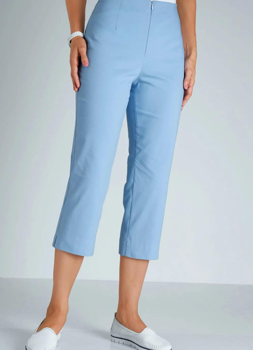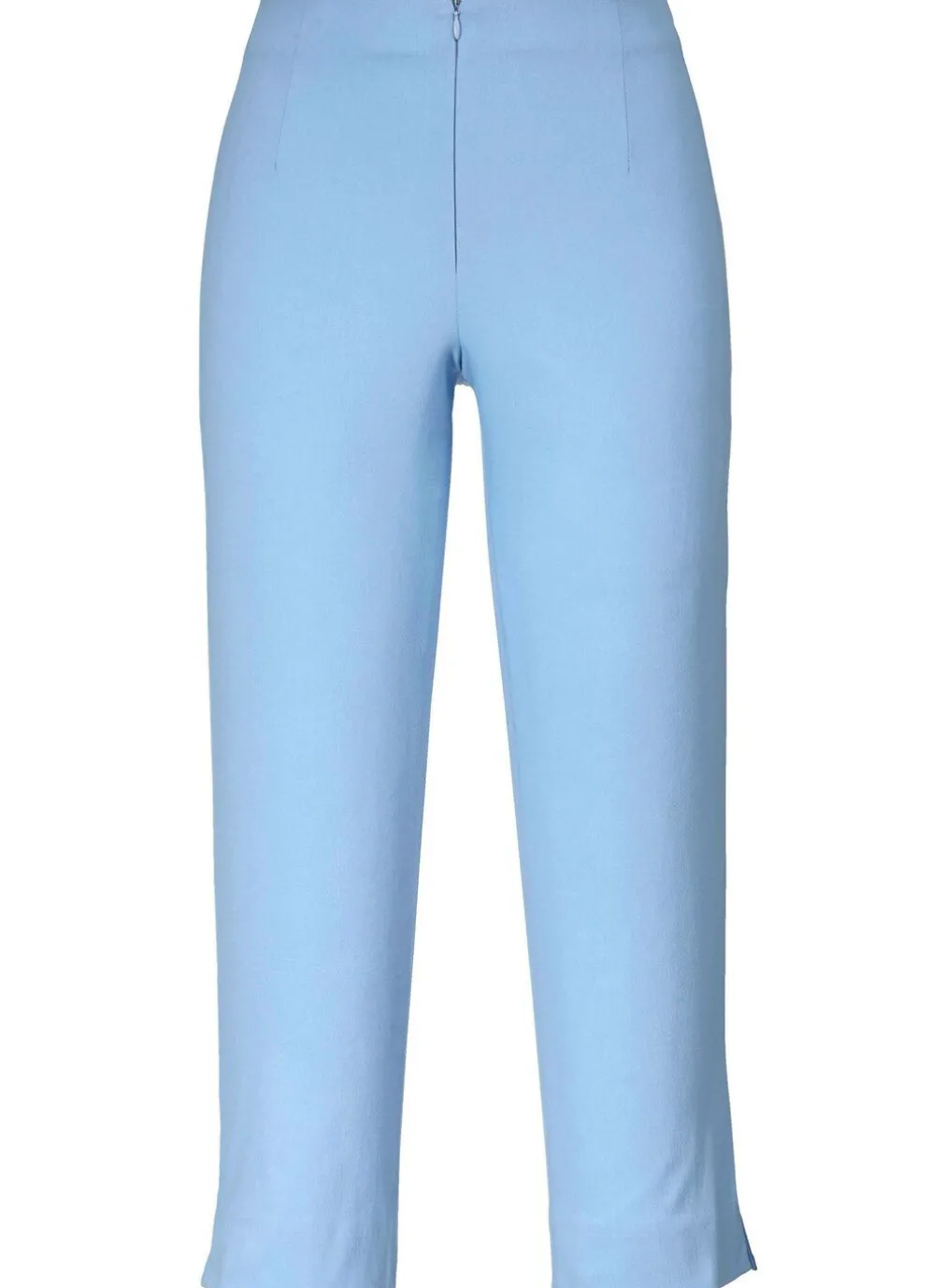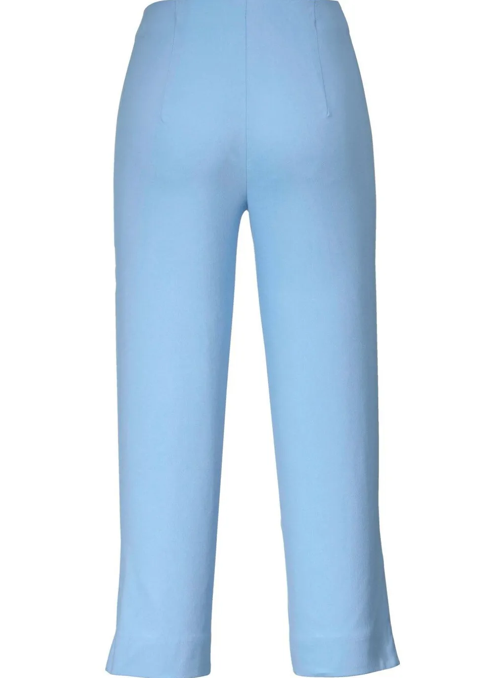 Flotte Hose in 7/8-Länge mit angenehmem, komfortablem Dehnbund rundum, Knopf- und Nahtreißverschluss, figurformende Abnäher im Vorder- und Rückteil sowie seitliche Schlitze an den Beinabschlüssen. Innenbeinlänge 63 cm.