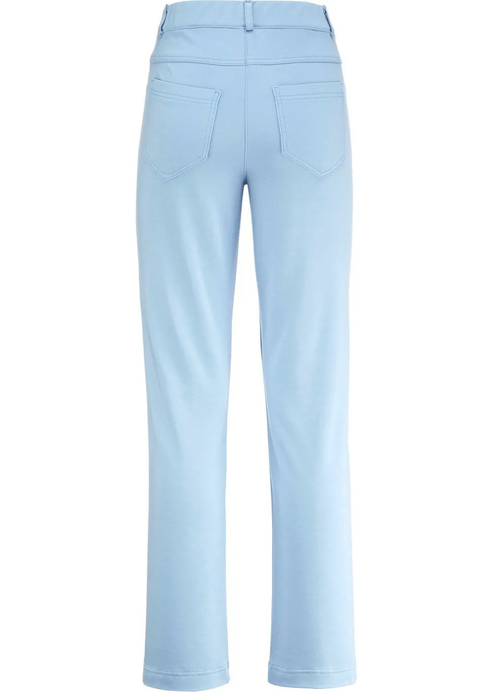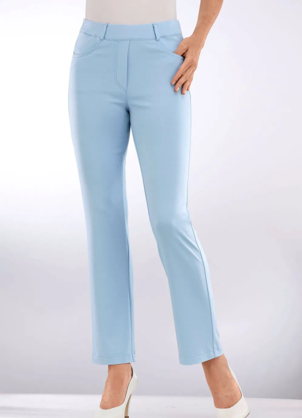 Fabelhafte, knöchellange Jerseyhose in attraktiver Beinweite: Schlupfform, glatt anliegend dank der innenliegenden Gummibund-Einlage, Gürtelschlaufen, Reißverschluss-Zierblende, Seitentaschen sowie aufgesetzte Gesäßtaschen. Innenbeinlänge ca. 71 cm, Fußweite ab 40 cm.