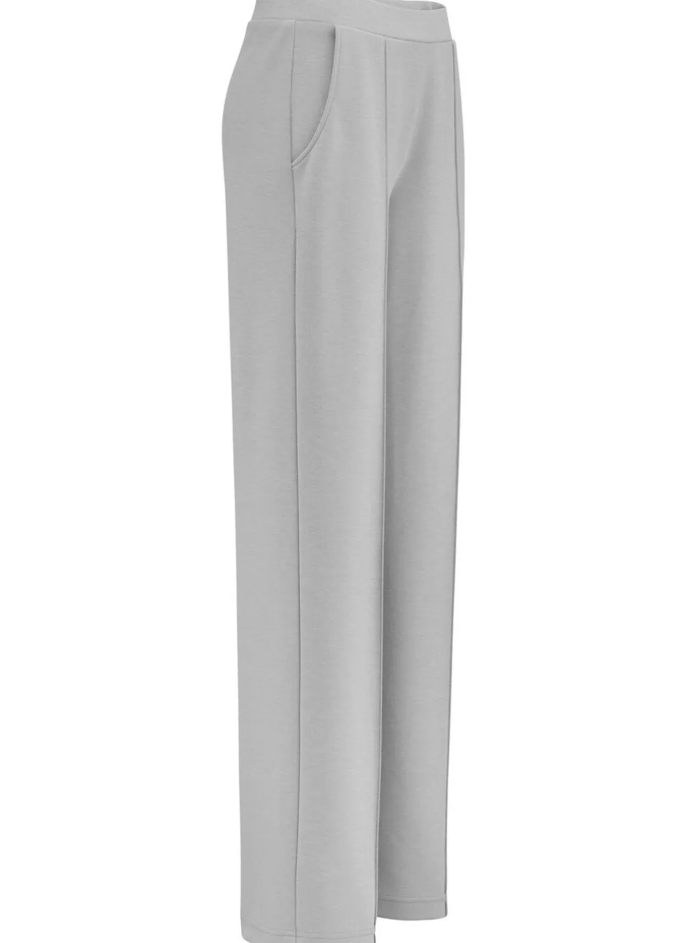 Fabelhafte graue Hose in modischer Weite: bequeme Schlupfform, glatt anliegend dank des innenliegenden Rundum-Dehnbundes, abgesteppte Biesen, die für eine streckende Optik sorgen sowie Seitentaschen. Innenbeinlänge ca. 78 cm, Fußweite ab 52 cm.
