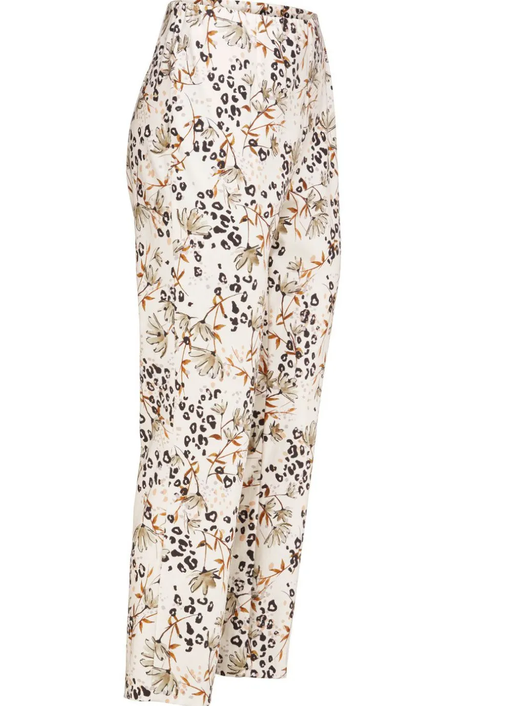 7/8-lange Hose in Ecru-Schwarz-Khaki von TIZIA mit angeschnittenem Bund, glatt anliegend dank der innenliegenden Gummibund-Einlage. Innenbeinlänge ca. 63 cm, Fußweite ab 34 cm.