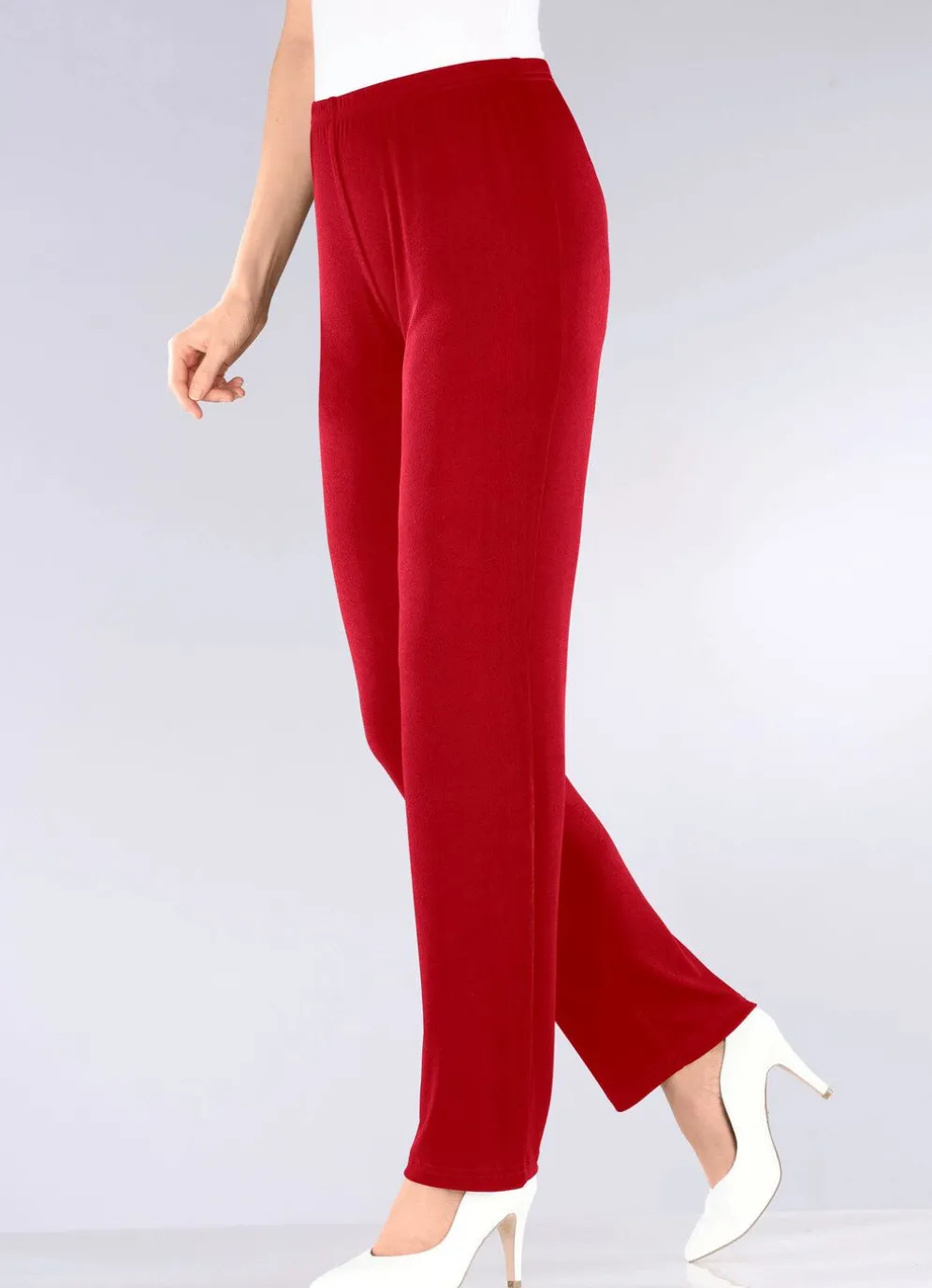 Feminine Wohlfühl-Eleganz mit edlem Glanz: schicke, bequem weite Hose in Schlupfform, mit Dehnbund rundum. Innenbeinlänge ca. 76 cm, Fußweite ab 40 cm.
