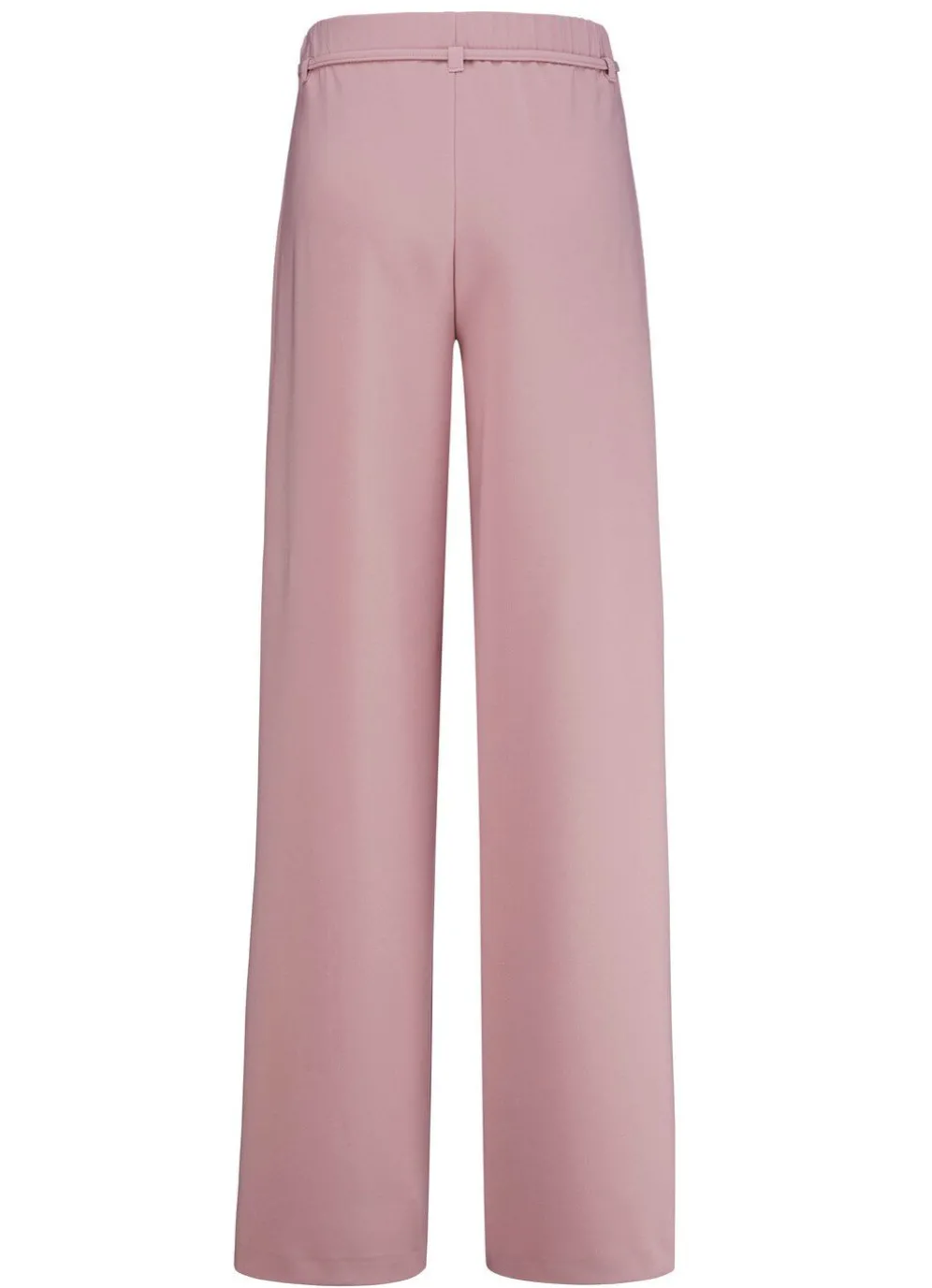 Exzellente Hose von Stilschmiede in modischer Weite: bequeme Schlupfform, mit rückwärtigem Dehnbundeinsatz, mit vorderer, glatter Bundverarbeitung und Kellerfalten, Gürtelschlaufen mit abnehmbarem Bindeband. Innenbeinlänge ca. 80 cm, Fußweite ab 66 cm.