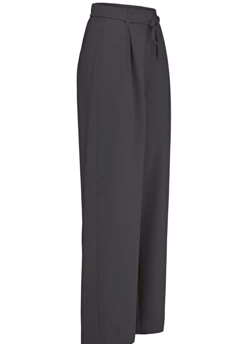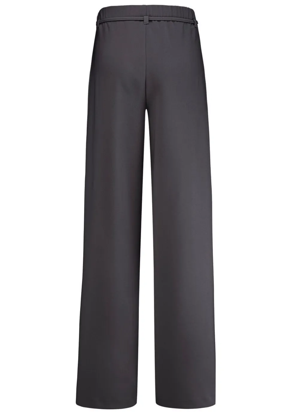 Exzellente Hose von Stilschmiede in modischer Weite: bequeme Schlupfform, mit rückwärtigem Dehnbundeinsatz, mit vorderer, glatter Bundverarbeitung und Kellerfalten, Gürtelschlaufen mit abnehmbarem Bindeband. Innenbeinlänge ca. 80 cm, Fußweite ab 66 cm.