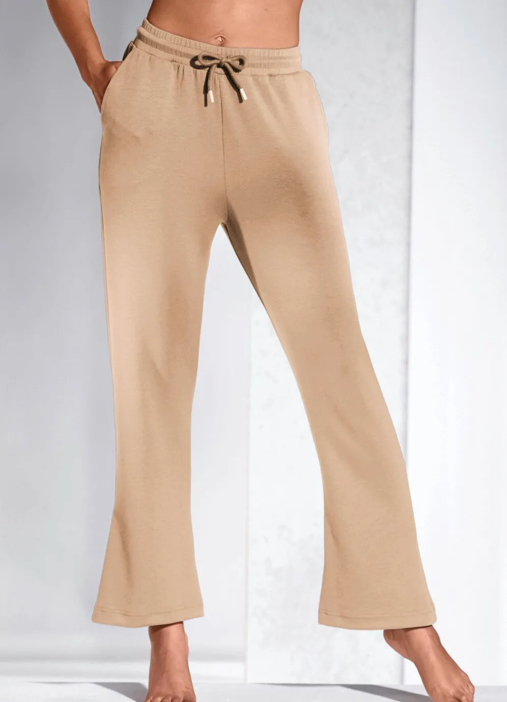 Gemütliche, weiche „Laurina”-Hose in langer Form, mit bequemen Dehnbund rundum, Bindeband, zwei Seitennahttaschen sowie leicht ausgestellter Fußweite.