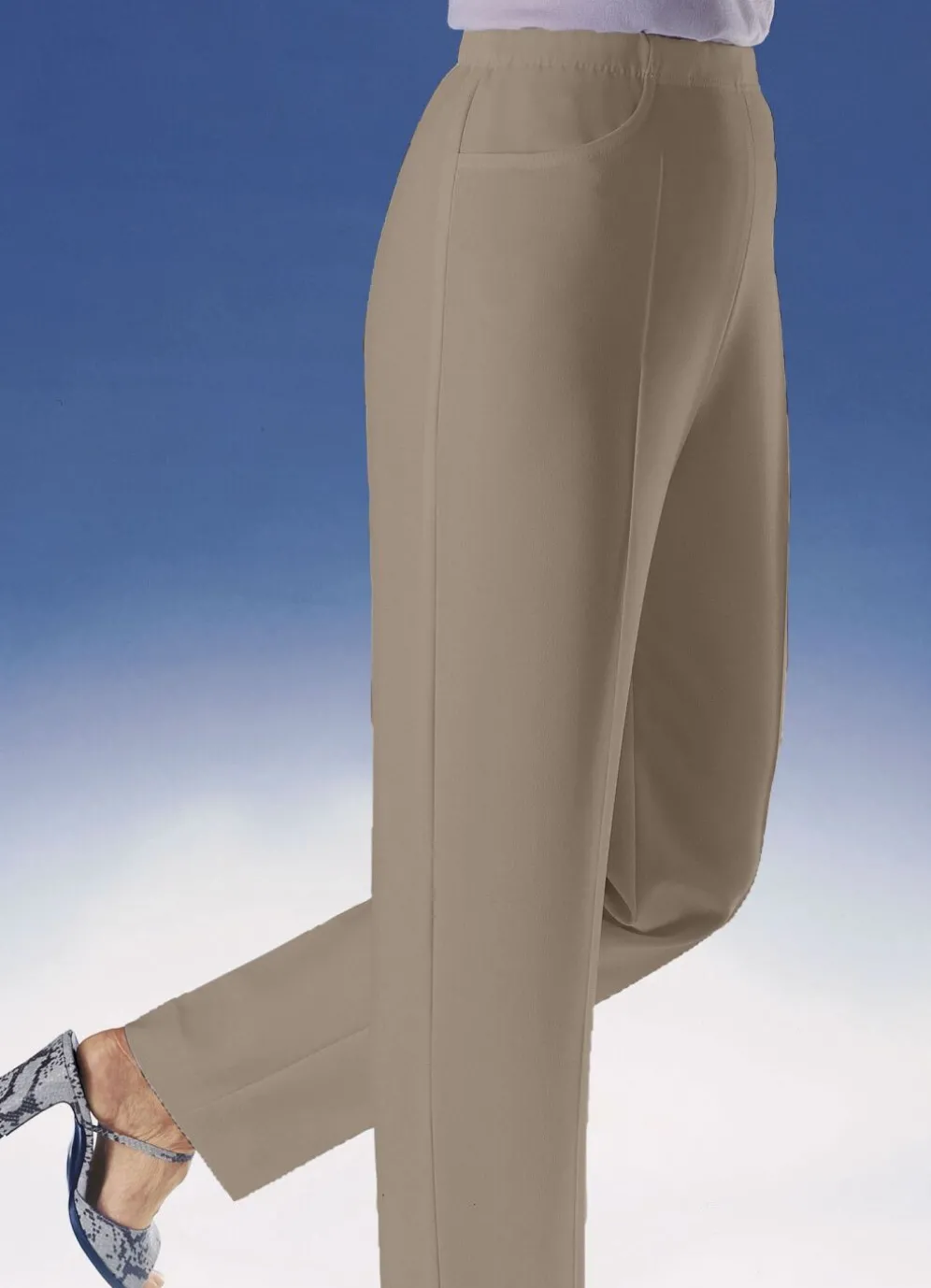 Kombifreundliche Hose in bequemer Schlupfform, mit Dehnbund rundum, praktischen Seitentaschen sowie seitlichen Schlitzen an den Beinabschlüssen Innenbeinlänge ca. 76 cm, Fußweite ab 38 cm.