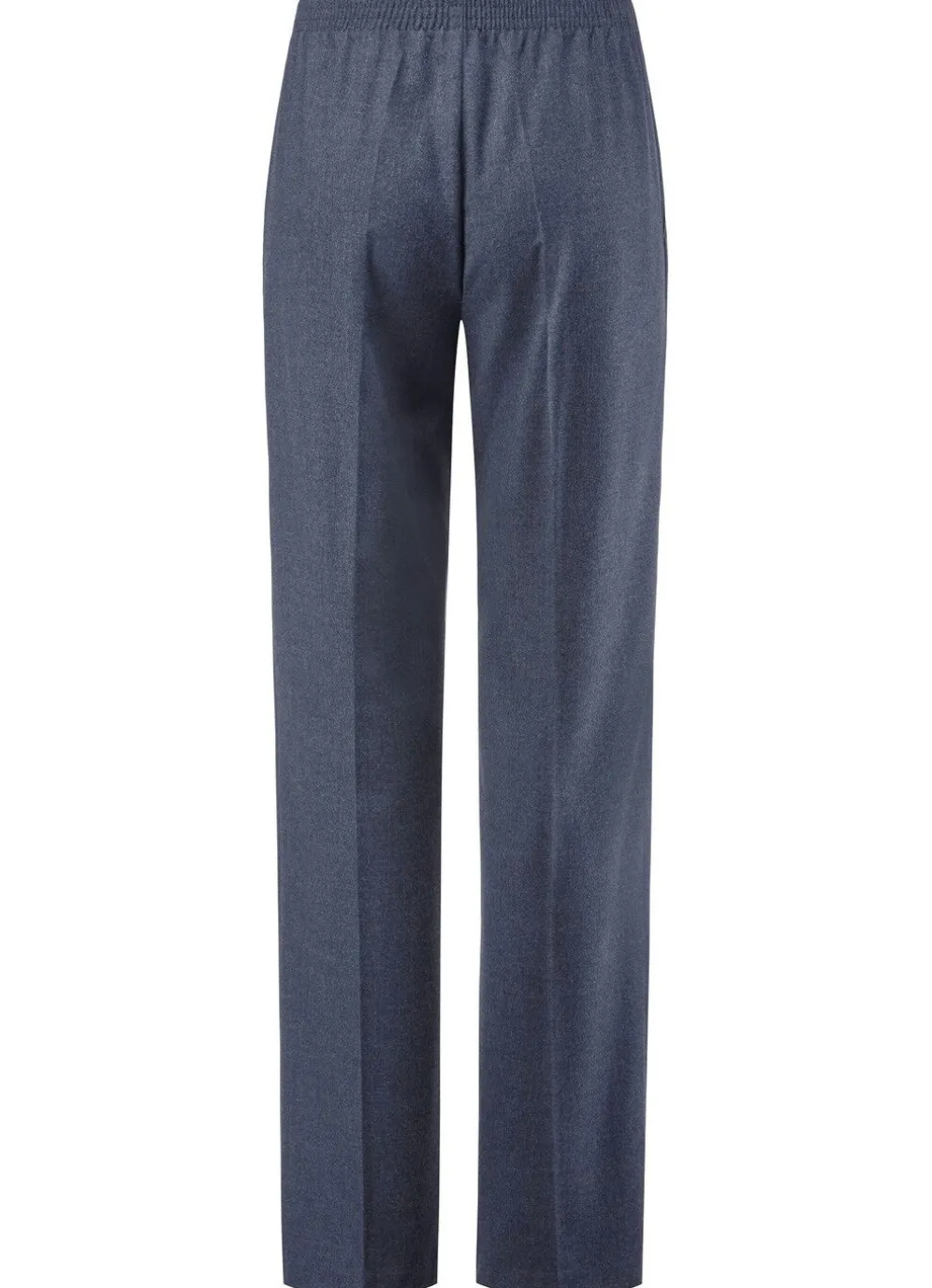 Trendgenau, hellgrau melierte Hose in modischer Weite von Stilschmiede: bequeme Schlupfform, rückwärtiger Dehnbundeinsatz, vordere, glatte Bundverarbeitung sowie Seitentaschen. Innenbeinlänge ca. 78 cm, Fußweite ab 42 cm.