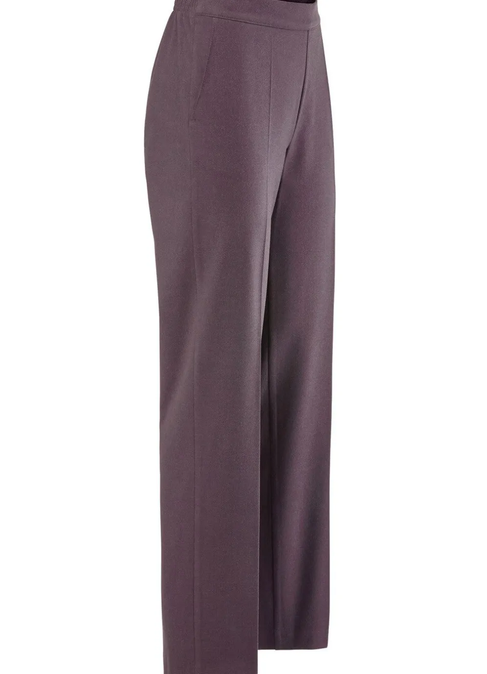 Trendgenau, hellgrau melierte Hose in modischer Weite von Stilschmiede: bequeme Schlupfform, rückwärtiger Dehnbundeinsatz, vordere, glatte Bundverarbeitung sowie Seitentaschen. Innenbeinlänge ca. 78 cm, Fußweite ab 42 cm.