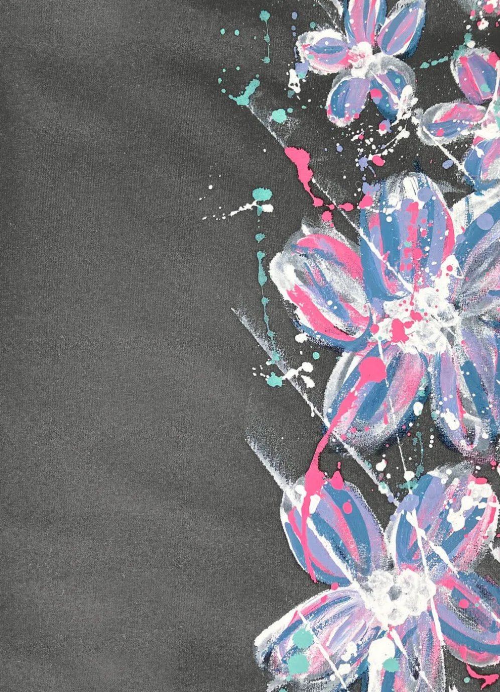 Jedes Teil ein Unikat! Diese lange Hose mit bequemem Dehnbund rundum, Kordelzug und zwei Schubtaschen überzeugt mit einem Spraydruck im Vorderteil.
