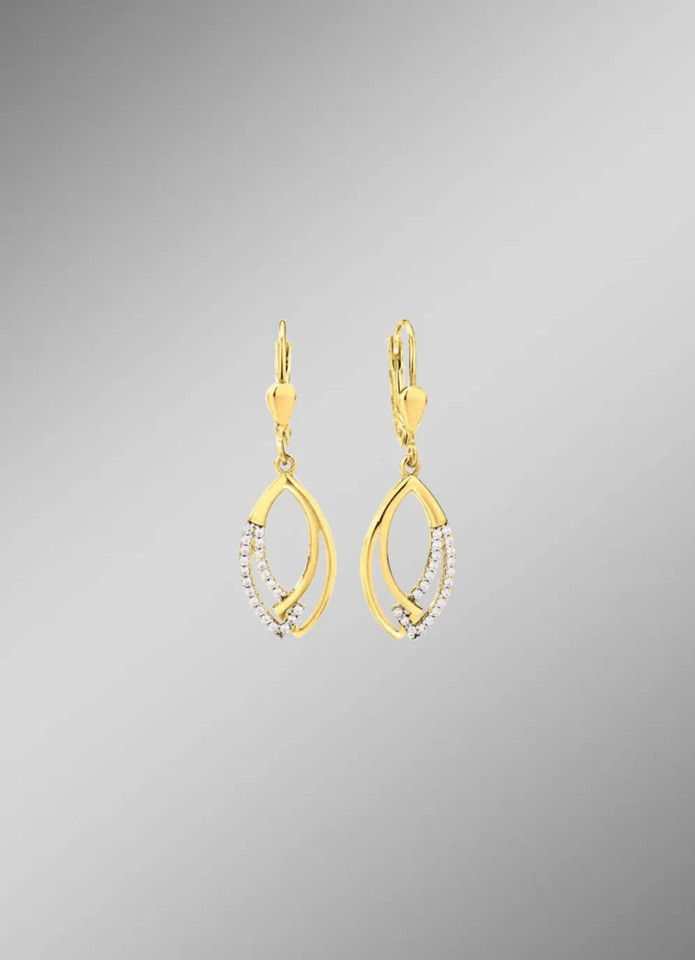 Eleganz, die ins Auge fällt: Diese Ohrringe aus Gold 375/- fein vereinen stilvolles Design mit funkelnder Raffinesse. Die synth. Zirkonia setzen strahlende Akzente und verleihen dem Schmuckstück ein edles Leuchten. Mit einer Länge von 35 mm wirken die Ohrringe feminin und ausdrucksstark, während die Brisur für sicheren Halt und angenehmen Tragekomfort sorgt.