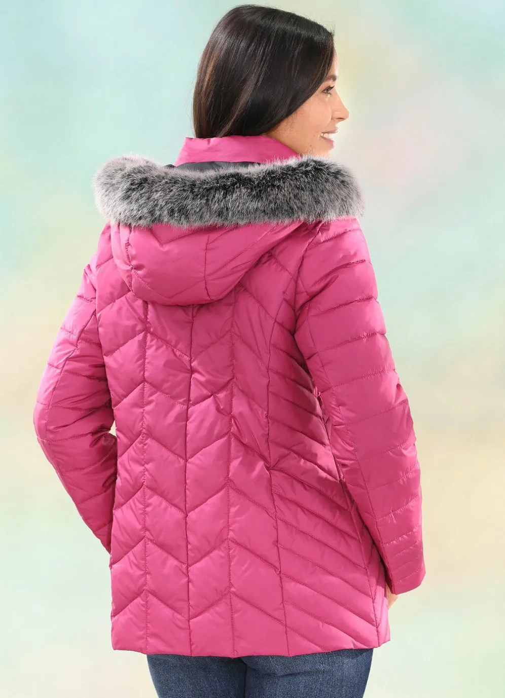 Die Qualität: Microfaser, Microfaserfutter, Sandwichstepp und Watte mit Daunencharakter jeweils aus 100% Polyester; Kunstpelz aus 85% Modacryl und 15% Polyester. Waschbar