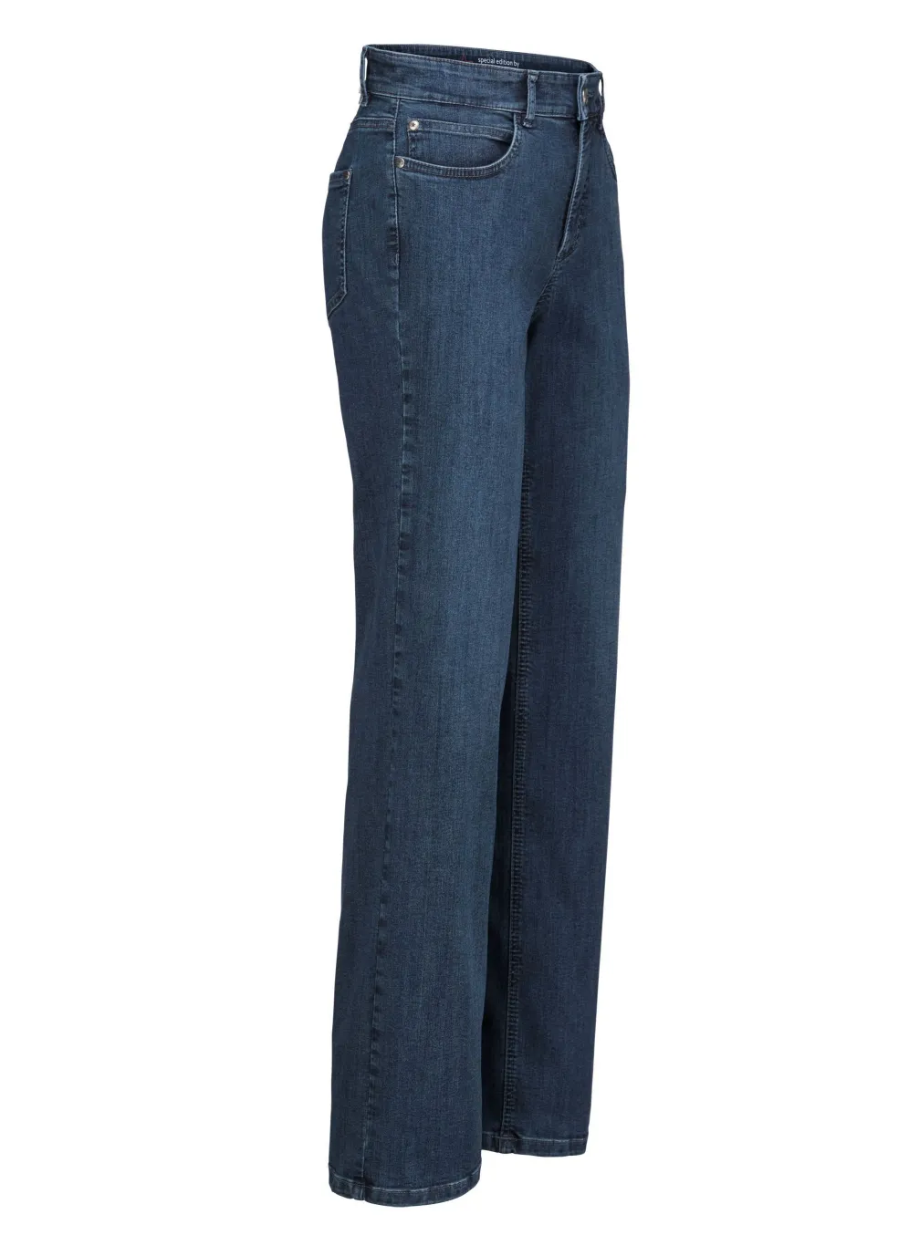 Stars by ascari – Modischer Denim-Look mit Stern-Details. Zeitlose Jeans mit weiterem Beinverlauf in 5-Pocket-Form mit dekorativen Ziernieten, Knopf- und Reißverschluss, Gürtelschlaufen, Jeanssattel, Sternniete auf der Kleingeldtasche sowie Knopf mit Sternprägung. Innenbeinlänge ca. 78 cm, Beinweite ca. 44 cm.