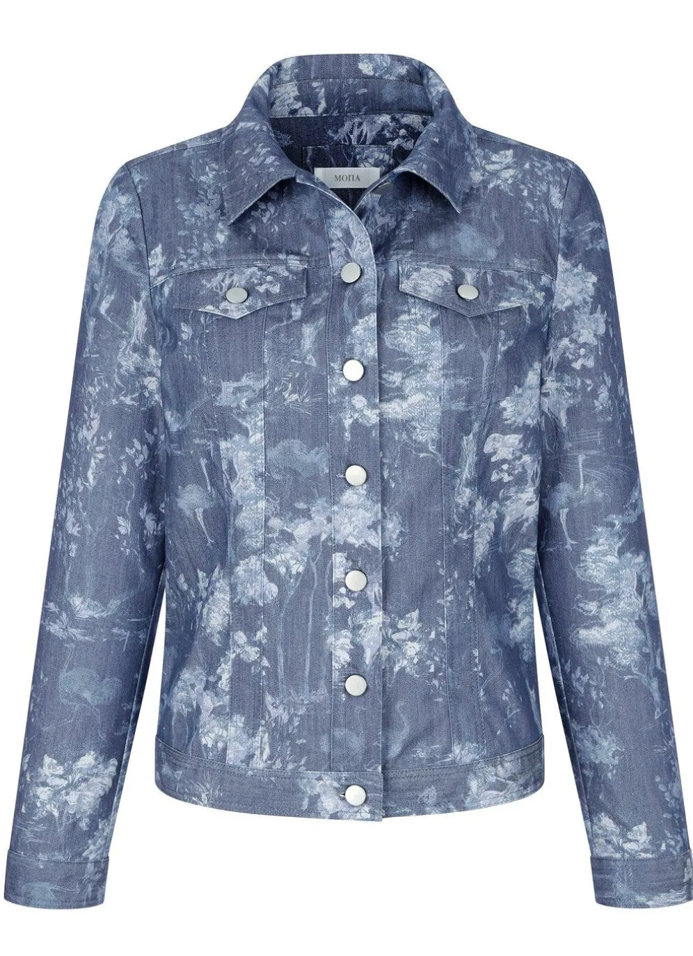 Diese leicht taillierte Jeansjacke mit Floralprint, Kragen, Knopfleiste, Brusttaschen mit Knopf sowie Ärmelabschlüssen mit Knopf und Manschette wird Ihr neuer, modischer Favorit werden ! Länge ca. 57 cm